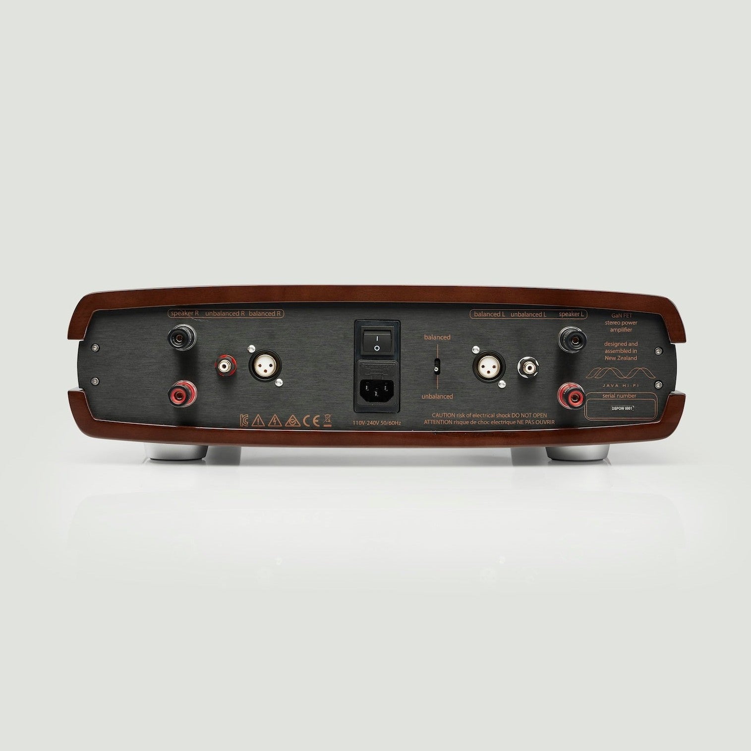- CNC-machined solid wood outer case with luxury real wood veneers