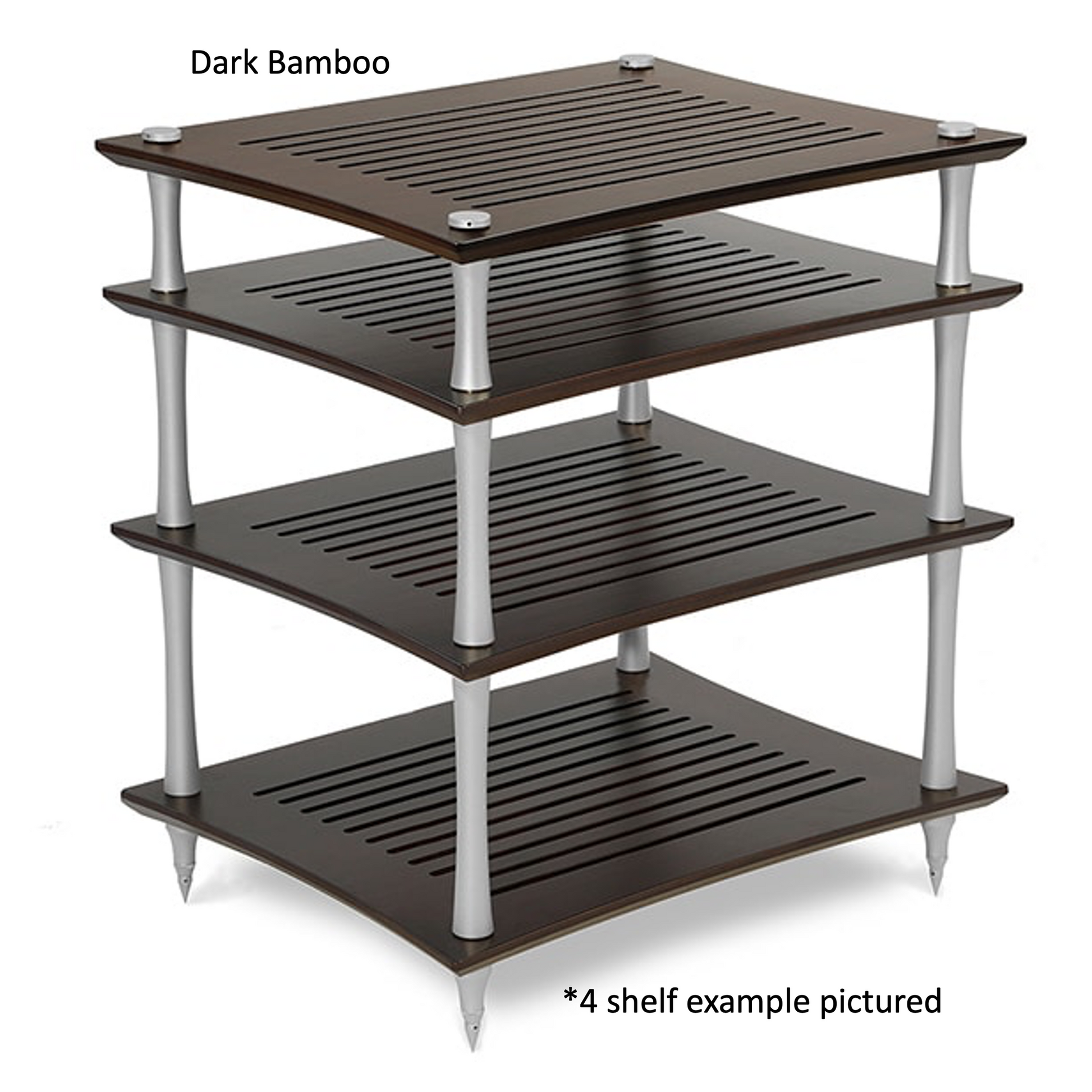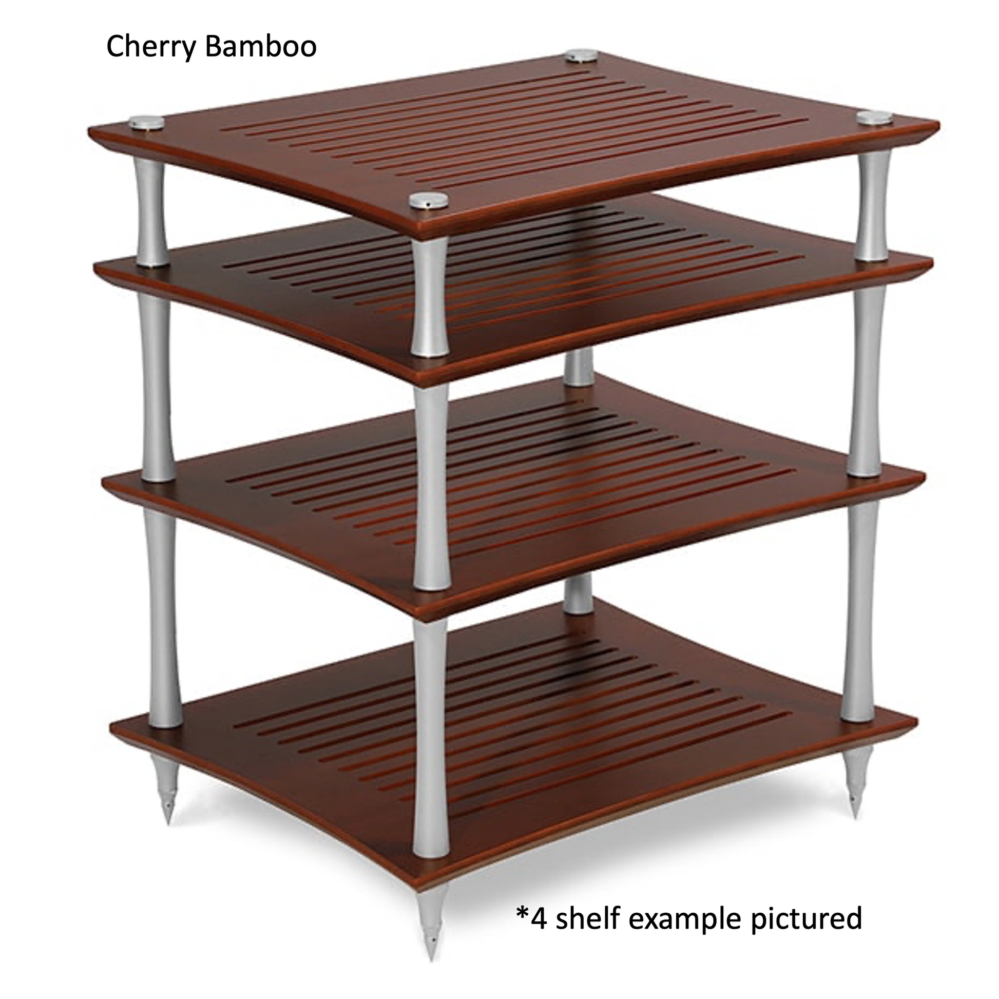 Shelves are made from solid bamboo which is available in natural or coloured. choice of 4 finishes, cherry, black dark and natural, for all our SVT Performance HiFi Racks.