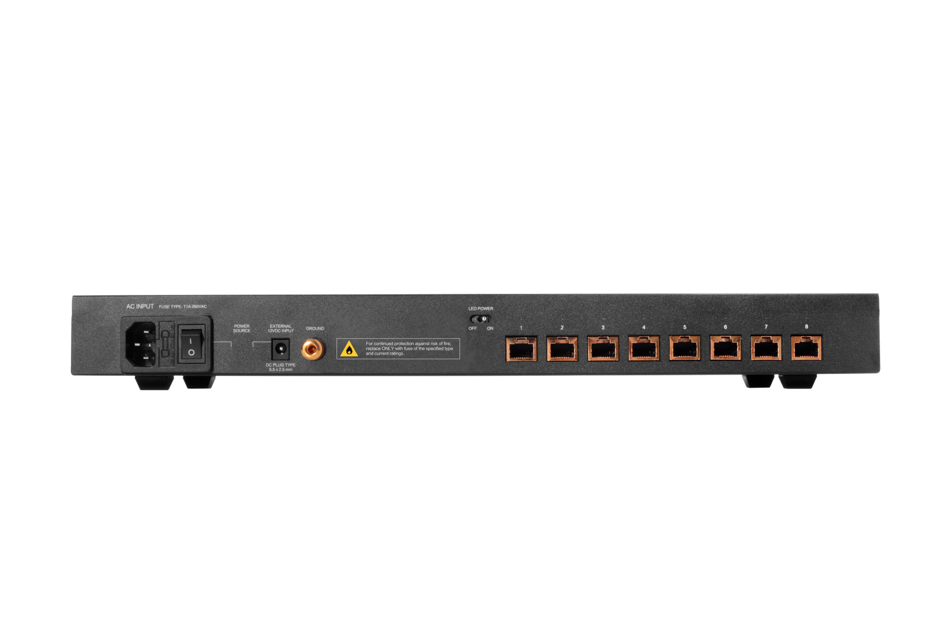 - Eight gold-plated Gigabit Ethernet Ports with spaced out ports to physically reduce possible signal interference.